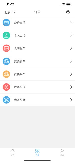 1、软件内用户可进行租车,分别客户不同属性,拥有公务租车、个人租车、会议租车、车辆长租等选项。