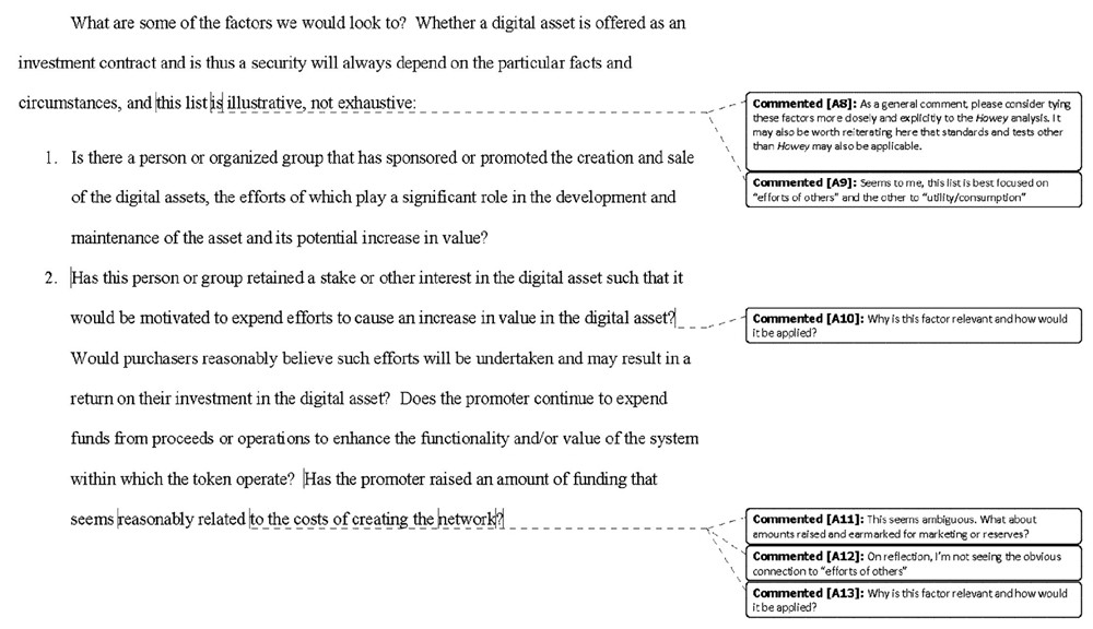 在演讲稿的末段,Hinman预期项目方和市场参与者会希望了解特定数字资产的交易是否被归类为证券;他提到:我们不是要玩「监管陷阱」,我们很乐意帮助项目方和他们的律师解决这些问题,我们随时准备就拟议中的数字资产特征向市场参与者提供更正式的解释或无行动指导。