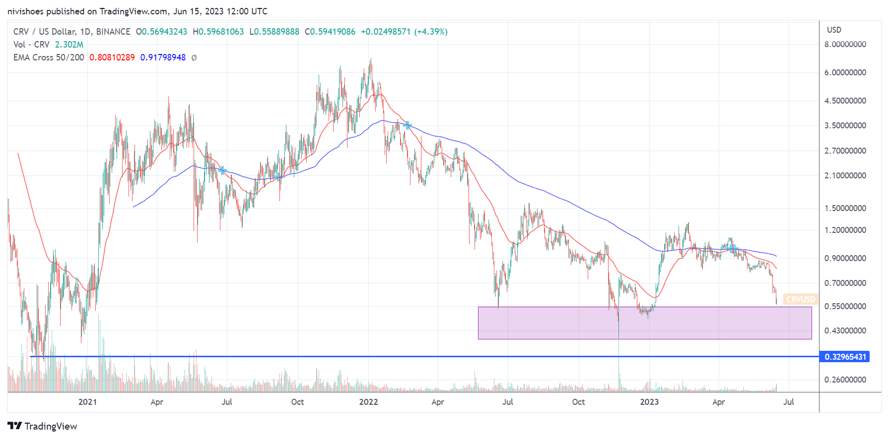 由于清算威胁 Curve(CRV)的价格触及1年低点