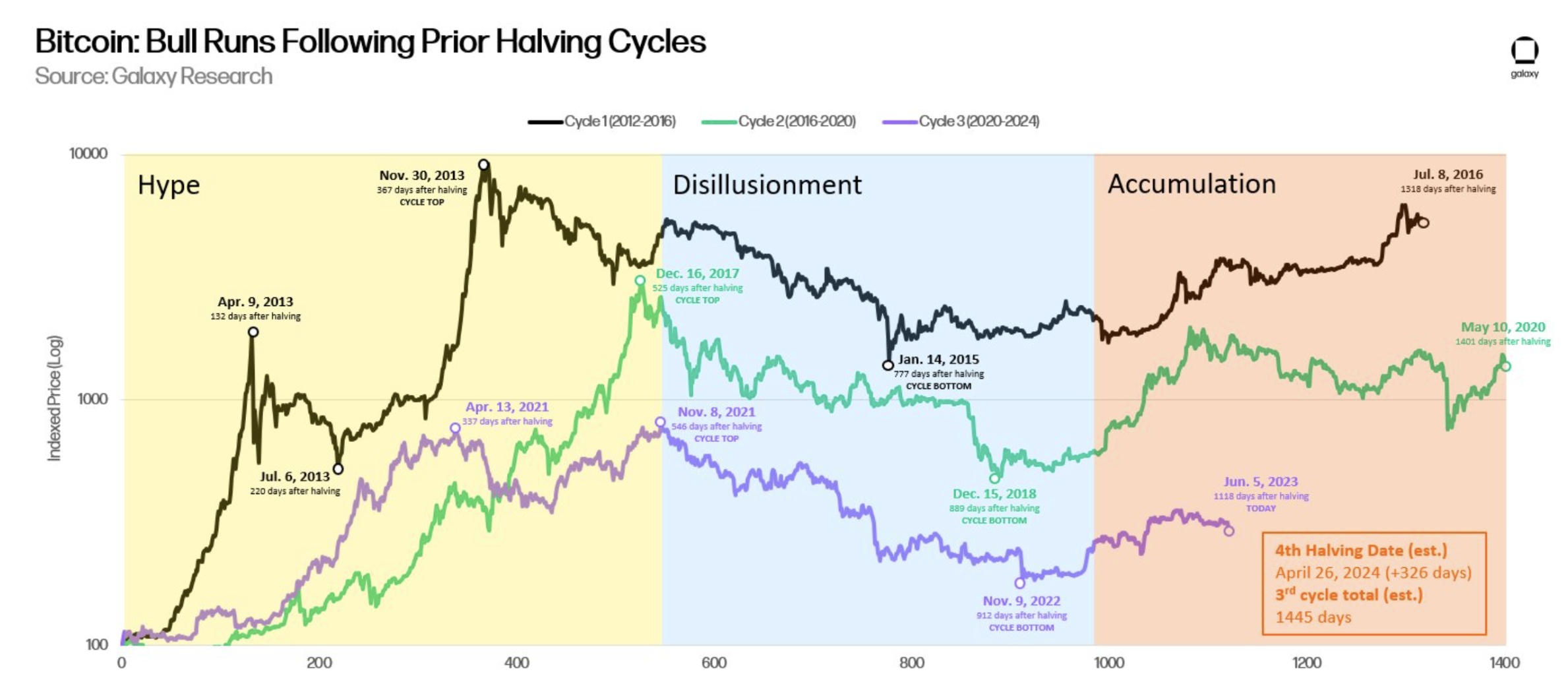 距离下一次比特币减半事件还有不到一年的时间。如下图所示,投资者目前处于周期的“积累”阶段。