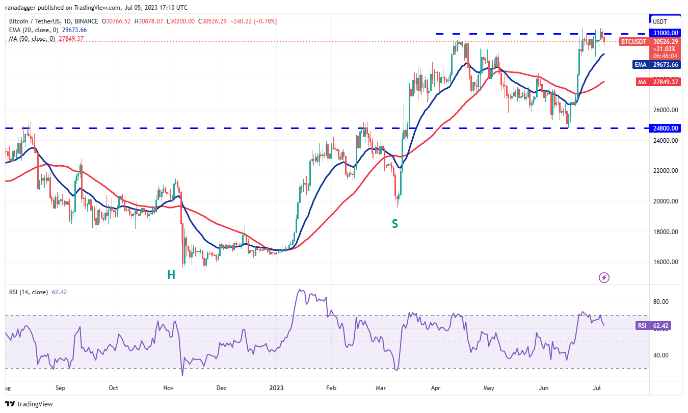 7 月 3 日,比特币突破并收于 31,000 美元上方,但多头无法在此基础上再接再厉。这表明空头尚未放弃。