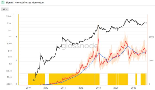 几个月前,新比特币地址创建的 30 天 SMA 突破了 365 天 SMA,这表明新比特币钱包的创建速度正在加快。从历史上看,这种情况在牛市开始时就发生过。